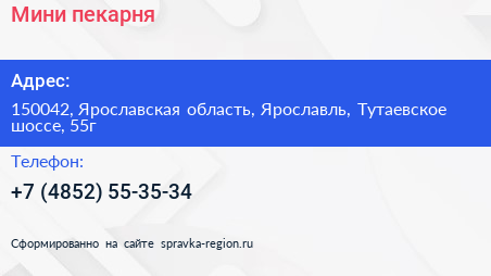 Мини-пекарня по адресу 150042, Ярославская область, Ярославль, Тутаевское шоссе, 55г в дальнейшем Организация, размещена в следующих категориях: