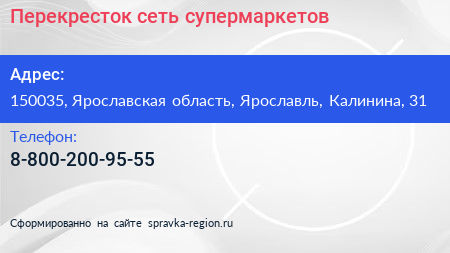 Перекресток, сеть супермаркетов по адресу 150035, Ярославская область, Ярославль, Калинина, 31 в дальнейшем Организация, размещена в следующих категориях: