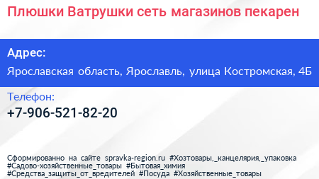 Плюшки Ватрушки, сеть магазинов-пекарен по адресу Ярославская область, Ярославль, улица Костромская, 4Б в дальнейшем Организация, размещена в следующих категориях: