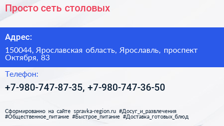 Просто, сеть столовых по адресу 150044, Ярославская область, Ярославль, проспект Октября, 83 в дальнейшем Организация, размещена в следующих категориях: