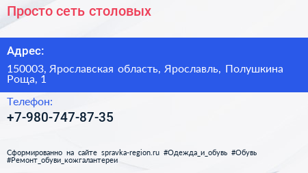 Просто, сеть столовых по адресу 150003, Ярославская область, Ярославль, Полушкина Роща, 1 в дальнейшем Организация, размещена в следующих категориях: