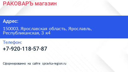 РАКОВАРЪ, магазин по адресу 150003, Ярославская область, Ярославль, Республиканская, 3 к4 в дальнейшем Организация, размещена в следующих категориях: