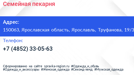 Семейная, пекарня по адресу 150063, Ярославская область, Ярославль, Труфанова, 19/3 в дальнейшем Организация, размещена в следующих категориях: