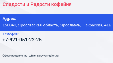 Сладости и Радости, кофейня по адресу 150040, Ярославская область, Ярославль, Некрасова, 41Б в дальнейшем Организация, размещена в следующих категориях: