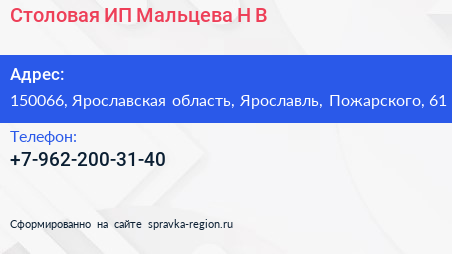 Столовая, ИП Мальцева Н.В. по адресу 150066, Ярославская область, Ярославль, Пожарского, 61 в дальнейшем Организация, размещена в следующих категориях: