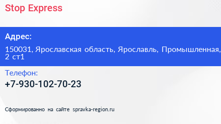 [Stop] Express по адресу 150031, Ярославская область, Ярославль, Промышленная, 2 ст1 в дальнейшем Организация, размещена в следующих категориях: