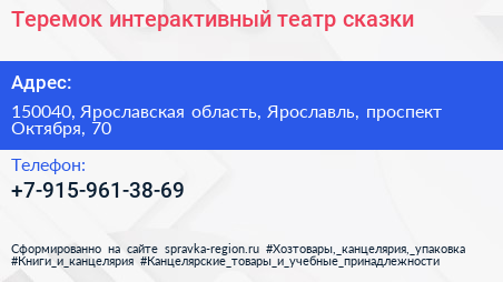 Теремок, интерактивный театр сказки по адресу 150040, Ярославская область, Ярославль, проспект Октября, 70 в дальнейшем Организация, размещена в следующих категориях: