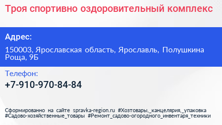 Троя, спортивно-оздоровительный комплекс по адресу 150003, Ярославская область, Ярославль, Полушкина Роща, 9Б в дальнейшем Организация, размещена в следующих категориях: