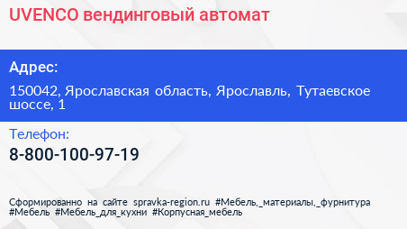 UVENCO, вендинговый автомат по адресу 150042, Ярославская область, Ярославль, Тутаевское шоссе, 1 в дальнейшем Организация, размещена в следующих категориях: