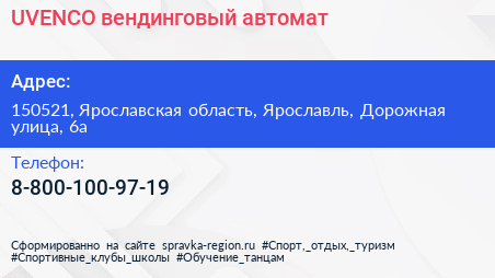 UVENCO, вендинговый автомат по адресу 150521, Ярославская область, Ярославль, Дорожная улица, 6а в дальнейшем Организация, размещена в следующих категориях: