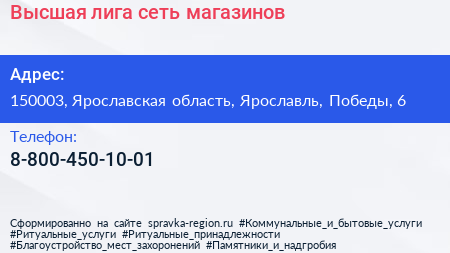 Высшая лига, сеть магазинов по адресу 150003, Ярославская область, Ярославль, Победы, 6 в дальнейшем Организация, размещена в следующих категориях: