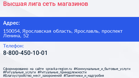 Высшая лига, сеть магазинов по адресу 150054, Ярославская область, Ярославль, проспект Ленина, 52 в дальнейшем Организация, размещена в следующих категориях: