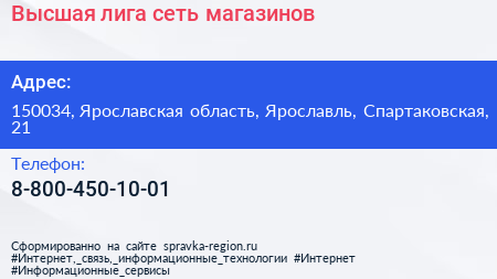 Высшая лига, сеть магазинов по адресу 150034, Ярославская область, Ярославль, Спартаковская, 21 в дальнейшем Организация, размещена в следующих категориях: