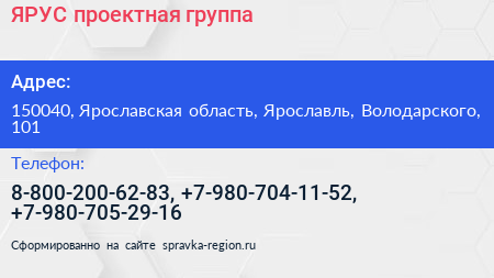 ЯРУС, проектная группа по адресу 150040, Ярославская область, Ярославль, Володарского, 101 в дальнейшем Организация, размещена в следующих категориях: