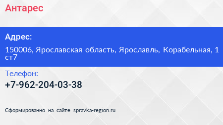 Антарес по адресу 150006, Ярославская область, Ярославль, Корабельная, 1 ст7 в дальнейшем Организация, размещена в следующих категориях: