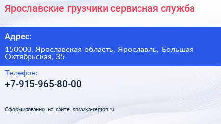 Ярославские грузчики, сервисная служба по адресу 150000, Ярославская область, Ярославль, Большая Октябрьская, 35 в дальнейшем Организация, размещена в следующих категориях: