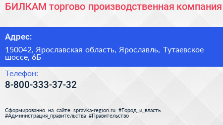 БИЛКАМ, торгово-производственная компания по адресу 150042, Ярославская область, Ярославль, Тутаевское шоссе, 6Б в дальнейшем Организация, размещена в следующих категориях: