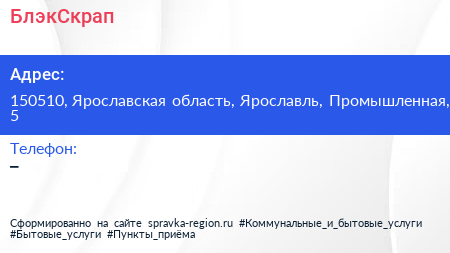 БлэкСкрап по адресу 150510, Ярославская область, Ярославль, Промышленная, 5 в дальнейшем Организация, размещена в следующих категориях: