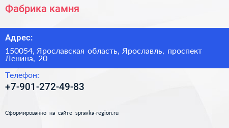 Фабрика камня по адресу 150054, Ярославская область, Ярославль, проспект Ленина, 20 в дальнейшем Организация, размещена в следующих категориях: