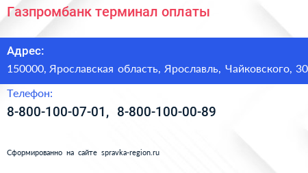Газпромбанк, терминал оплаты по адресу 150000, Ярославская область, Ярославль, Чайковского, 30 в дальнейшем Организация, размещена в следующих категориях: