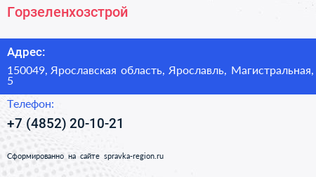 Горзеленхозстрой по адресу 150049, Ярославская область, Ярославль, Магистральная, 5 в дальнейшем Организация, размещена в следующих категориях:
