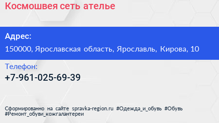 Космошвея, сеть ателье по адресу 150000, Ярославская область, Ярославль, Кирова, 10 в дальнейшем Организация, размещена в следующих категориях:
