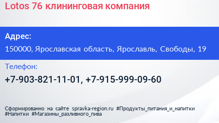 Lotos.76, клининговая компания по адресу 150000, Ярославская область, Ярославль, Свободы, 19 в дальнейшем Организация, размещена в следующих категориях:
