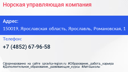 Норская управляющая компания по адресу 150019, Ярославская область, Ярославль, Романовская, 1 в дальнейшем Организация, размещена в следующих категориях: