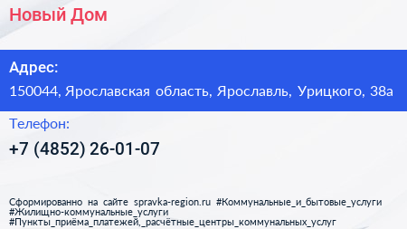 Новый Дом по адресу 150044, Ярославская область, Ярославль, Урицкого, 38а в дальнейшем Организация, размещена в следующих категориях:
