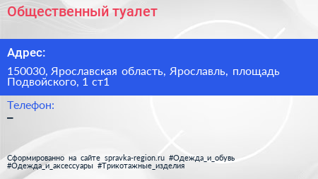 Общественный туалет по адресу 150030, Ярославская область, Ярославль, площадь Подвойского, 1 ст1 в дальнейшем Организация, размещена в следующих категориях:
