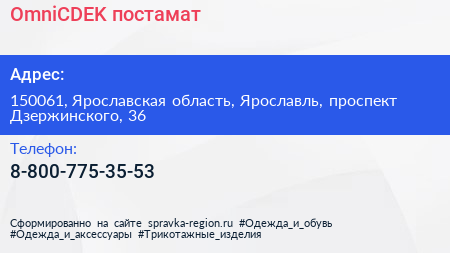 OmniCDEK, постамат по адресу 150061, Ярославская область, Ярославль, проспект Дзержинского, 36 в дальнейшем Организация, размещена в следующих категориях: