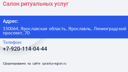 Салон ритуальных услуг по адресу 150064, Ярославская область, Ярославль, Ленинградский проспект, 70 в дальнейшем Организация, размещена в следующих категориях: