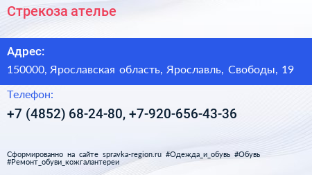 Стрекоза, ателье по адресу 150000, Ярославская область, Ярославль, Свободы, 19 в дальнейшем Организация, размещена в следующих категориях: