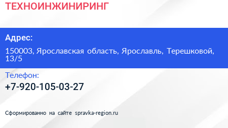 ТЕХНОИНЖИНИРИНГ по адресу 150003, Ярославская область, Ярославль, Терешковой, 13/5 в дальнейшем Организация, размещена в следующих категориях: