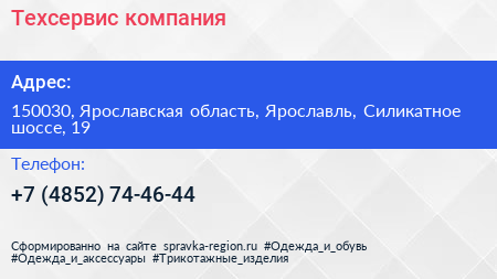 Техсервис, компания по адресу 150030, Ярославская область, Ярославль, Силикатное шоссе, 19 в дальнейшем Организация, размещена в следующих категориях: