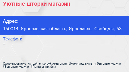 Уютные шторки, магазин по адресу 150014, Ярославская область, Ярославль, Свободы, 63 в дальнейшем Организация, размещена в следующих категориях: