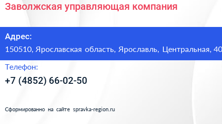 Заволжская управляющая компания по адресу 150510, Ярославская область, Ярославль, Центральная, 40 в дальнейшем Организация, размещена в следующих категориях: