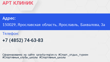 АРТ-КЛИНИК по адресу 150029, Ярославская область, Ярославль, Бахвалова, 3а в дальнейшем Организация, размещена в следующих категориях: