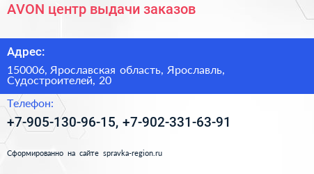 AVON, центр выдачи заказов по адресу 150006, Ярославская область, Ярославль, Судостроителей, 20 в дальнейшем Организация, размещена в следующих категориях: