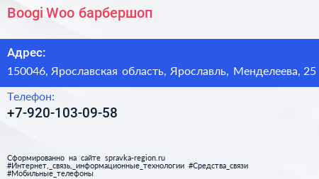 Boogi Woo, барбершоп по адресу 150046, Ярославская область, Ярославль, Менделеева, 25 в дальнейшем Организация, размещена в следующих категориях:
