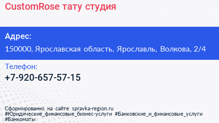 CustomRose, тату-студия по адресу 150000, Ярославская область, Ярославль, Волкова, 2/4 в дальнейшем Организация, размещена в следующих категориях: