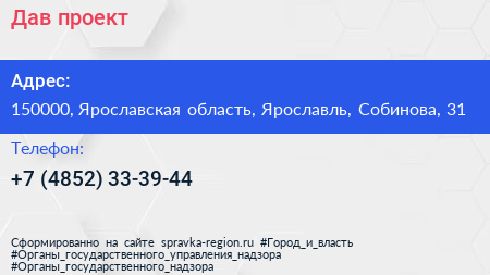 Дав проект по адресу 150000, Ярославская область, Ярославль, Собинова, 31 в дальнейшем Организация, размещена в следующих категориях: