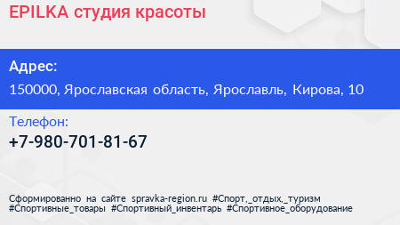EPILKA, студия красоты по адресу 150000, Ярославская область, Ярославль, Кирова, 10 в дальнейшем Организация, размещена в следующих категориях: