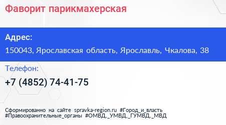 Фаворит, парикмахерская по адресу 150043, Ярославская область, Ярославль, Чкалова, 38 в дальнейшем Организация, размещена в следующих категориях: