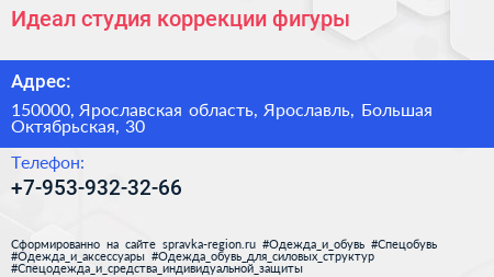 Идеал, студия коррекции фигуры по адресу 150000, Ярославская область, Ярославль, Большая Октябрьская, 30 в дальнейшем Организация, размещена в следующих категориях: