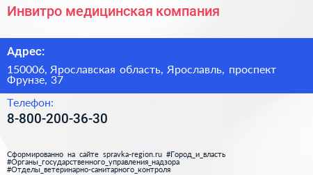 Инвитро, медицинская компания по адресу 150006, Ярославская область, Ярославль, проспект Фрунзе, 37 в дальнейшем Организация, размещена в следующих категориях: