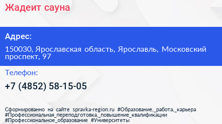 Жадеит, сауна по адресу 150030, Ярославская область, Ярославль, Московский проспект, 97 в дальнейшем Организация, размещена в следующих категориях: