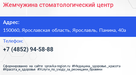 Жемчужина, стоматологический центр по адресу 150060, Ярославская область, Ярославль, Панина, 40а в дальнейшем Организация, размещена в следующих категориях: