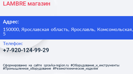 LAMBRE, магазин по адресу 150000, Ярославская область, Ярославль, Комсомольская, 5 в дальнейшем Организация, размещена в следующих категориях: