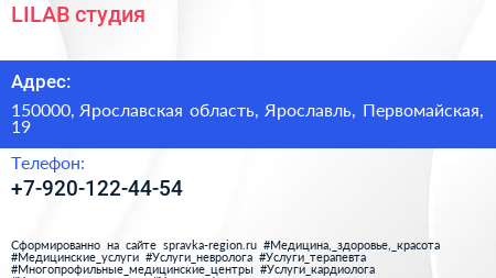 LILAB, студия по адресу 150000, Ярославская область, Ярославль, Первомайская, 19 в дальнейшем Организация, размещена в следующих категориях: